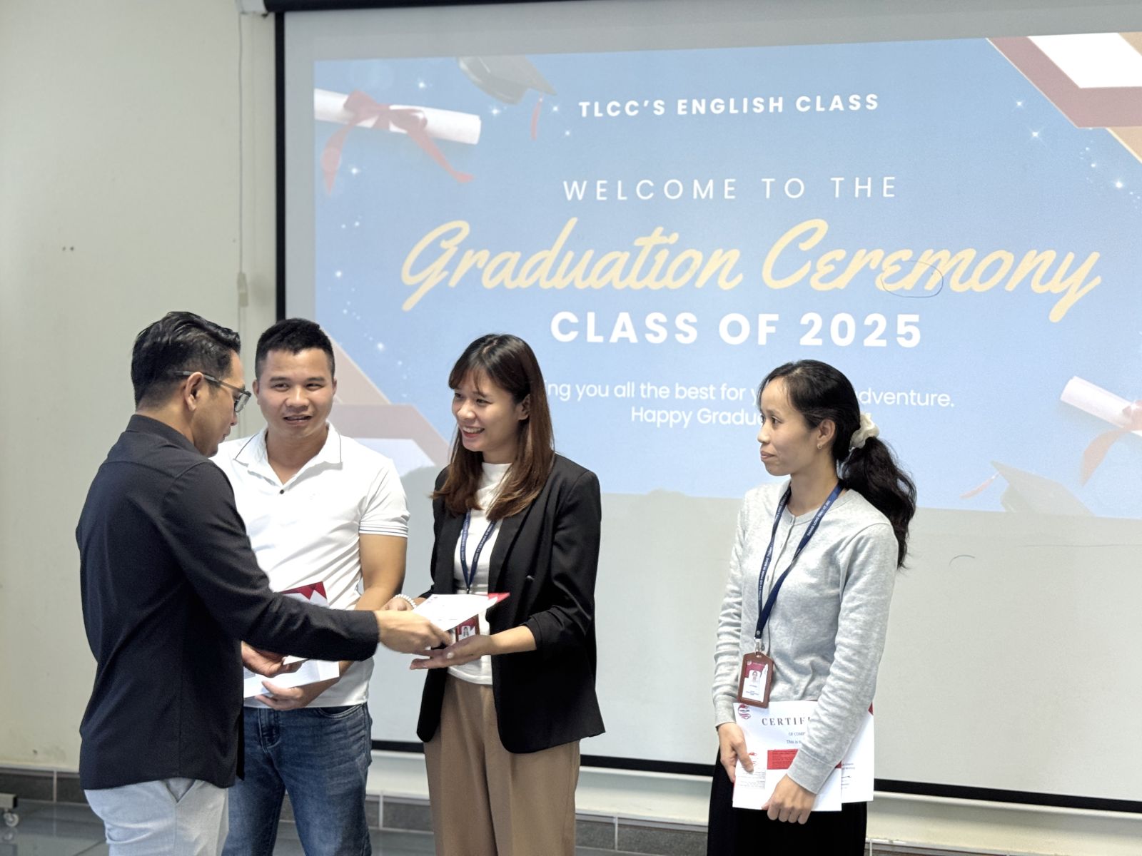 Tại buổi tổng kết, Công ty đã tiến hành trao chứng chỉ hoàn thành khóa học cho tất cả các học viên, ghi nhận sự cam kết và nỗ lực của mỗi cá nhân. Đặc biệt, 3 học viên xuất sắc nhất đã được vinh danh và trao giải thưởng, trở thành nguồn cảm hứng mạnh mẽ cho phong trào học tập trong toàn công ty.