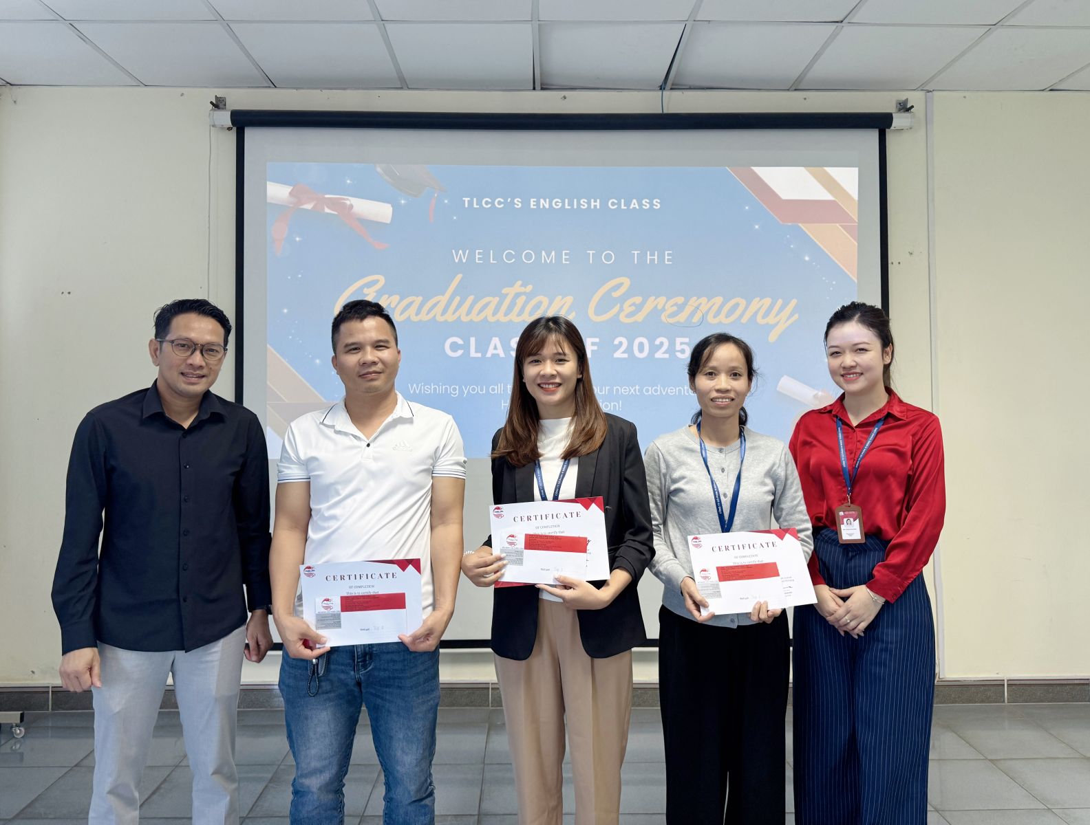 Ngày 14/11/2025, Công ty CP Xi măng Thăng Long đã tổ chức buổi Tổng kết Khóa đào tạo Tiếng Anh Nội bộ, đánh dấu chặng đường 6 tháng nỗ lực học tập của các cán bộ nhân viên. Buổi tổng kết vinh dự có sự tham dự của Ban Lãnh đạo Công ty và toàn thể học viên.